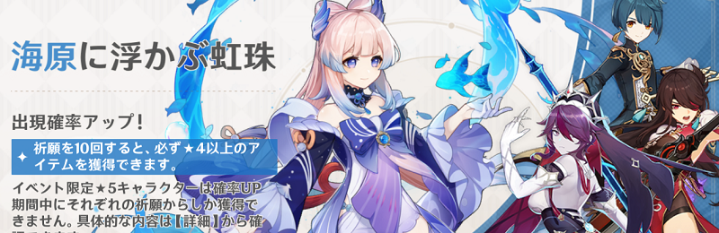 まさかの20回20回で神里綾華と宵宮を連続でゲット。宵宮は諦めていたので予想外でした。
