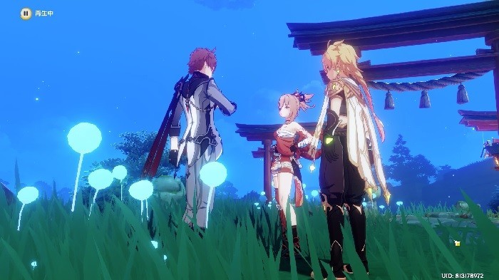 2022年11月の原神イベント、「旅の写真に閃きを・緑葉編(Outside the Canvas, Inside the Lens / Greenery Chapter)」で、稲妻のNPC「朝霧」の依頼で各地の写真を撮る過程で、稲妻の鎮守の森に寄った際にタルタリヤと宵宮が知り合っている場面に遭遇しました。その際の記録です。このタルタリヤ、宵宮イベントは2段階あるようで、最初は、宵宮が連れている子供達と「袋狢(ふくろむじな)」という妖怪を追いかけるという話。次に同じ辺りに行くと、タルタリヤの弟に持って帰る稲妻土産についての相談をしています。