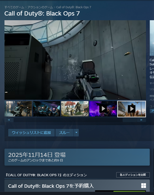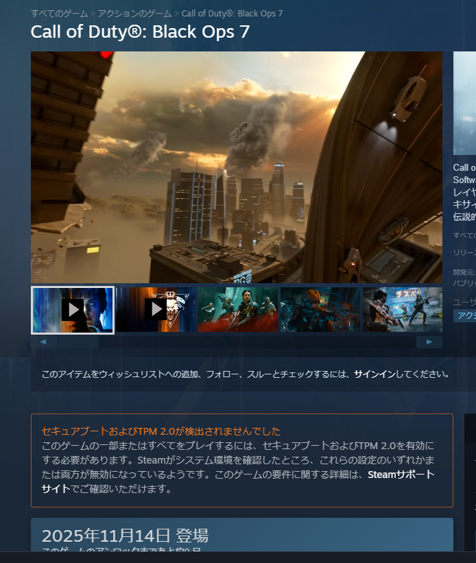 2025年11月に出るCall of Duty: Black Ops 7、息子も過去作のCall of Dutyを始めた事もあり、久々に購入するか……と思ったのですが、Steamのストアページにこんな表示が。