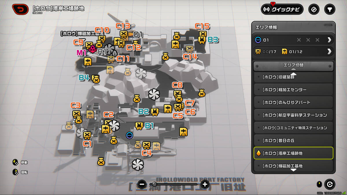 ゲーム「ゼンレスゾーンゼロ(Zenless Zone Zero)」、探索エリア「ラマニアンホロウ(Lemnian Hollow)」のなかにある、湾岸工場跡地(Old Port Factory)と呼ばれる区域の地図と、そこにある自走カーゴその他のオブジェクト、ギミッククリアの記録です。なお、「コレクション」と「散らばった物資」については https://www.backyrd.net/entry/20260108/1767867650 で紹介していますので、そちらをご覧下さい。